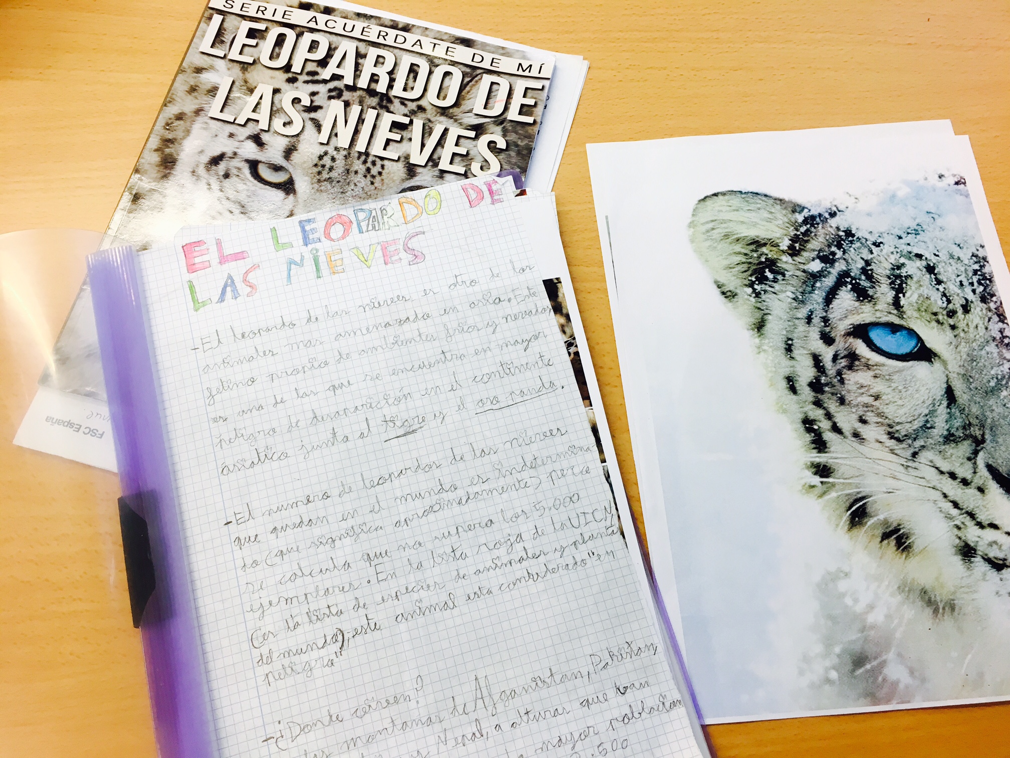 Todo estas ventajas que os comento al trabajar de esta manera pueden parecer muy teóricas, pero os puedo garantizar que es lo que he vivido desde el principio con Martina y con el Leopardo de las nieves. En la vacaciones se acordó del trabajo y buscamos entre las dos la información, y ella sola quiso elegir lo que escribir.