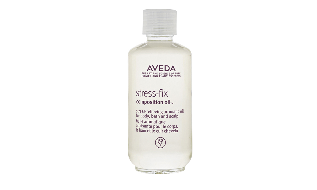 Stress-FixTM Composición oil, es un aceite nutritivo aromático 100% natural para el baño, el cuerpo y el cuero cabelludo con aroma relajante demostrado clínicamente que reduce la sensación de estrés.  Contiene emolientes derivados de plantas que hidratan y ayudan a  fortalecer la barrera de humedad de la piel y proporcionan luminosidad inmediata a la piel. Los beneficios adicionales incluyen antioxidantes, incluyendo la vitamina E que ayuda a retrasar el envejecimiento de la piel, aporta elasticidad y reafirma.