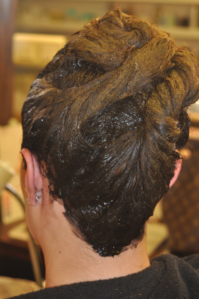 Coloración natural 100% a partir de Barros a base de mezcla de plantas como la Henna. Lo que se consigue con esta técnica es maquillar la cana y el efecto dependerá de porcentaje que tiene la persona de canas, siendo un efecto en muchas ocasiones de mechas muy finas que aportan una degradación de color muy bonita.